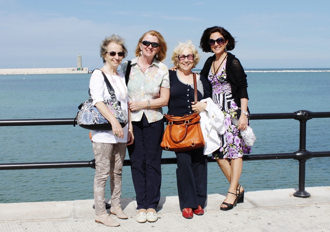 Da sinistra: Ambra, Sandra, Erika e me sul lungomare di Bari